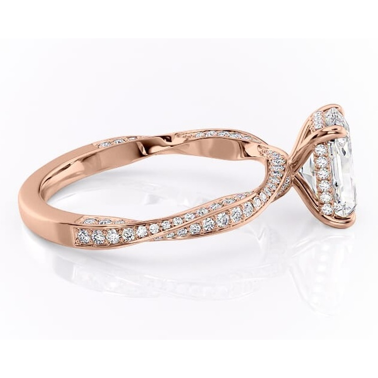Inel de logodnă Rhea din aur Rose 18kt cu moissanite tăietură radiantă – Montură pavé rafinată pentru profil înalt | Personalizează și configurează gratuit online