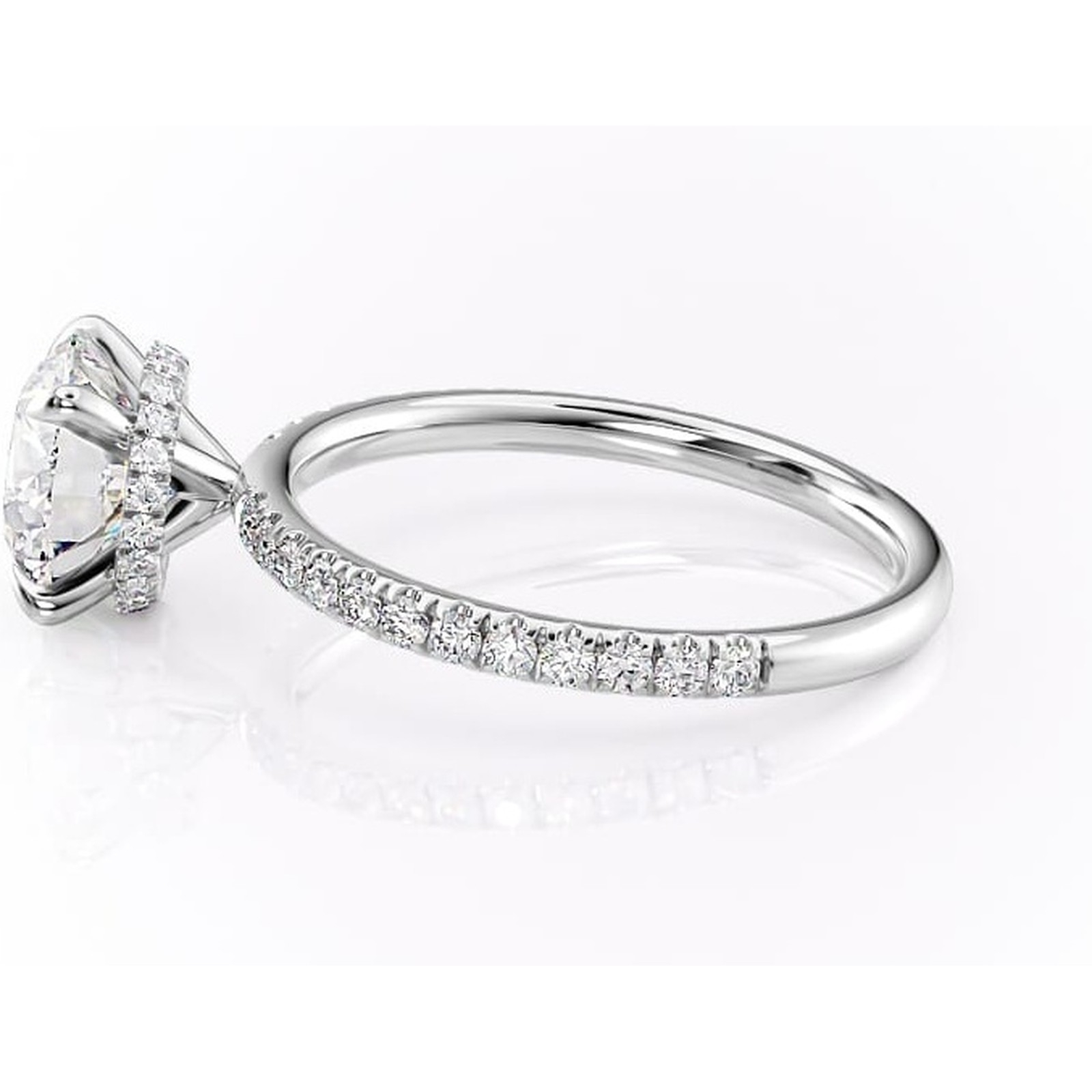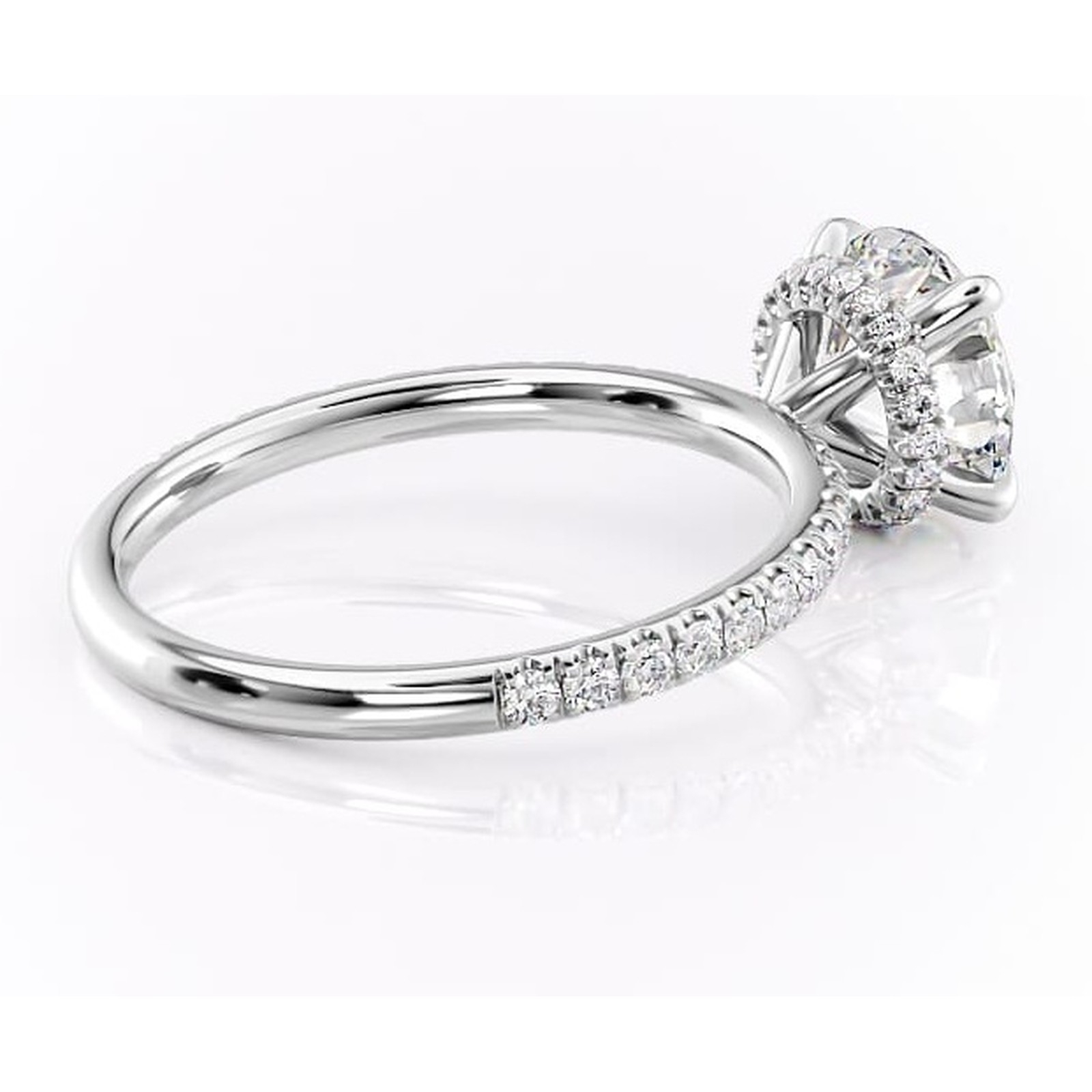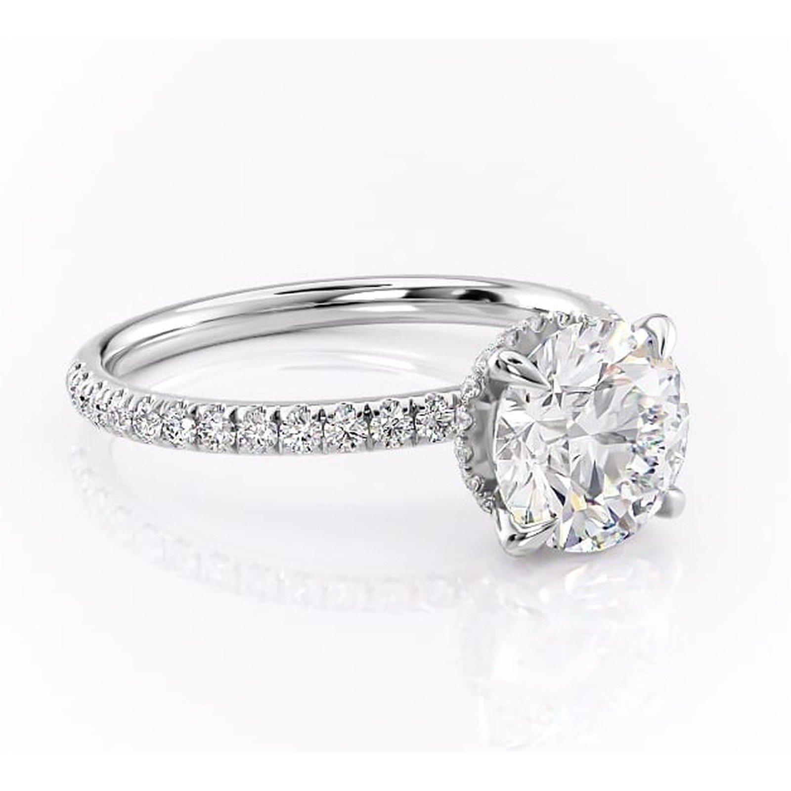 Inel de logodnă Briony din aur Alb 14kt cu moissanite tăietură rotundă – Montură pavé rafinată pentru profil înalt | Personalizează și configurează gratuit online