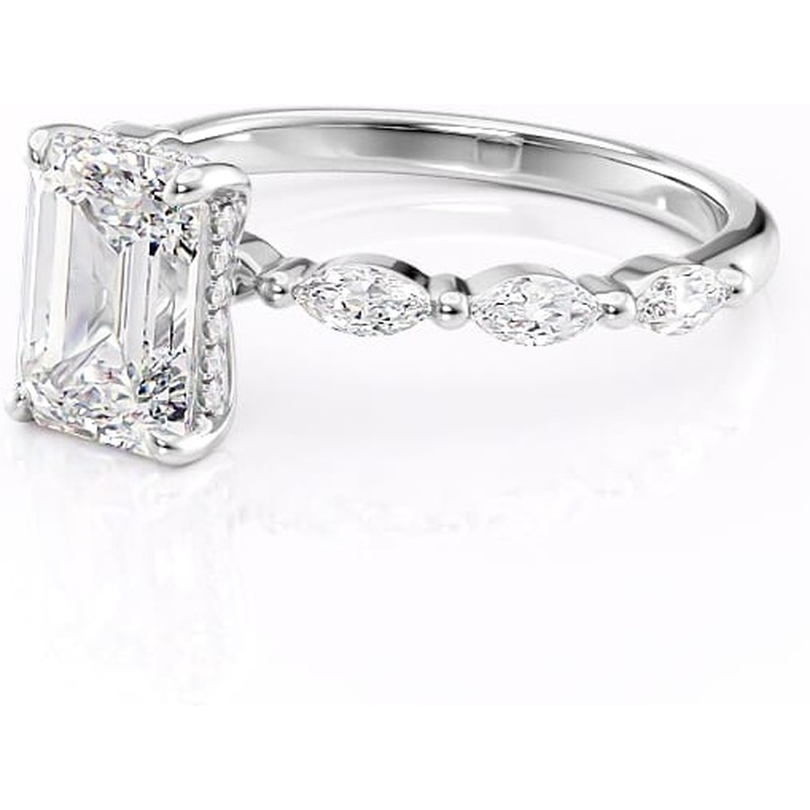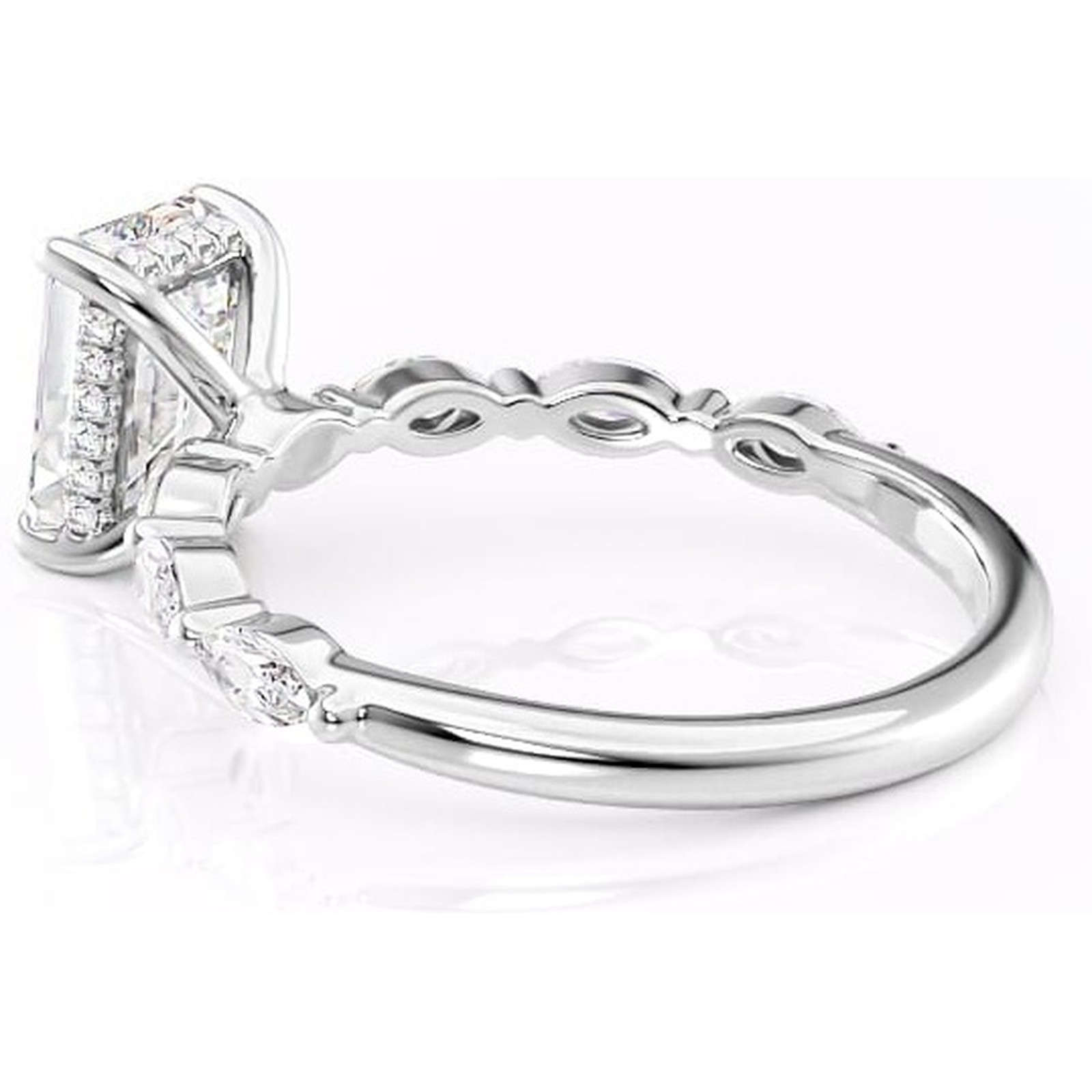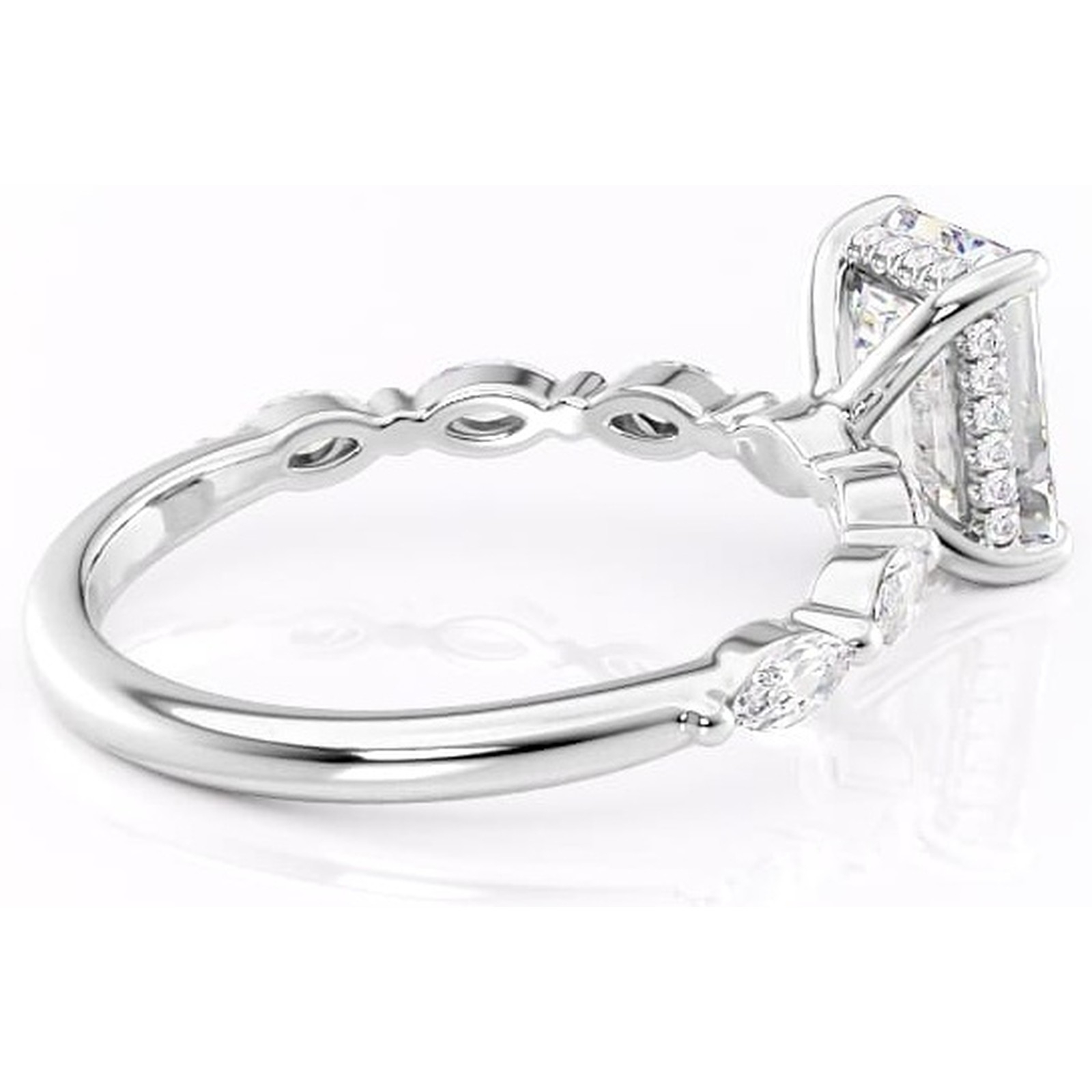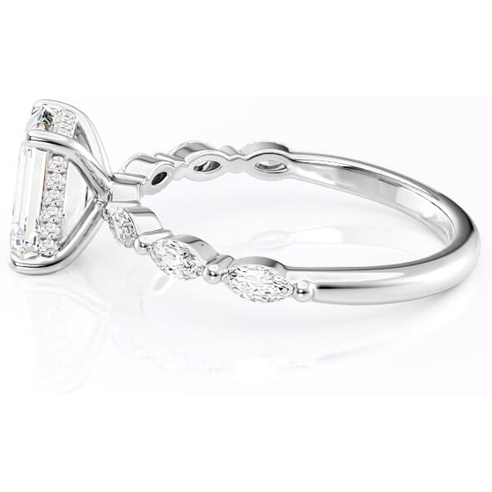 Inel de logodnă Everly din aur Alb 14kt cu moissanite tăietură smarald – Pietre laterale rafinată pentru profil înalt | Personalizează și configurează gratuit online
