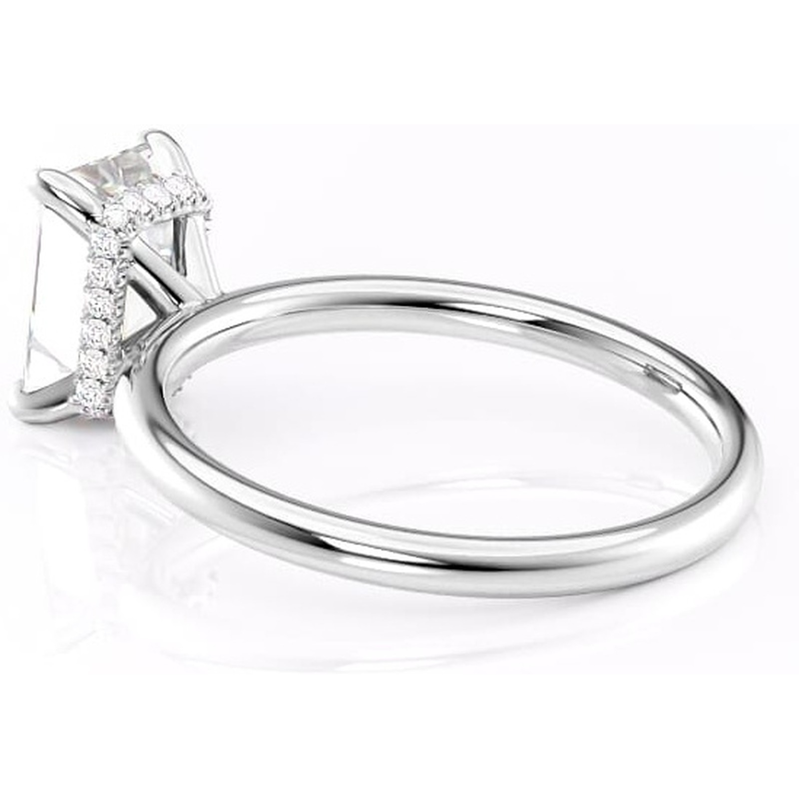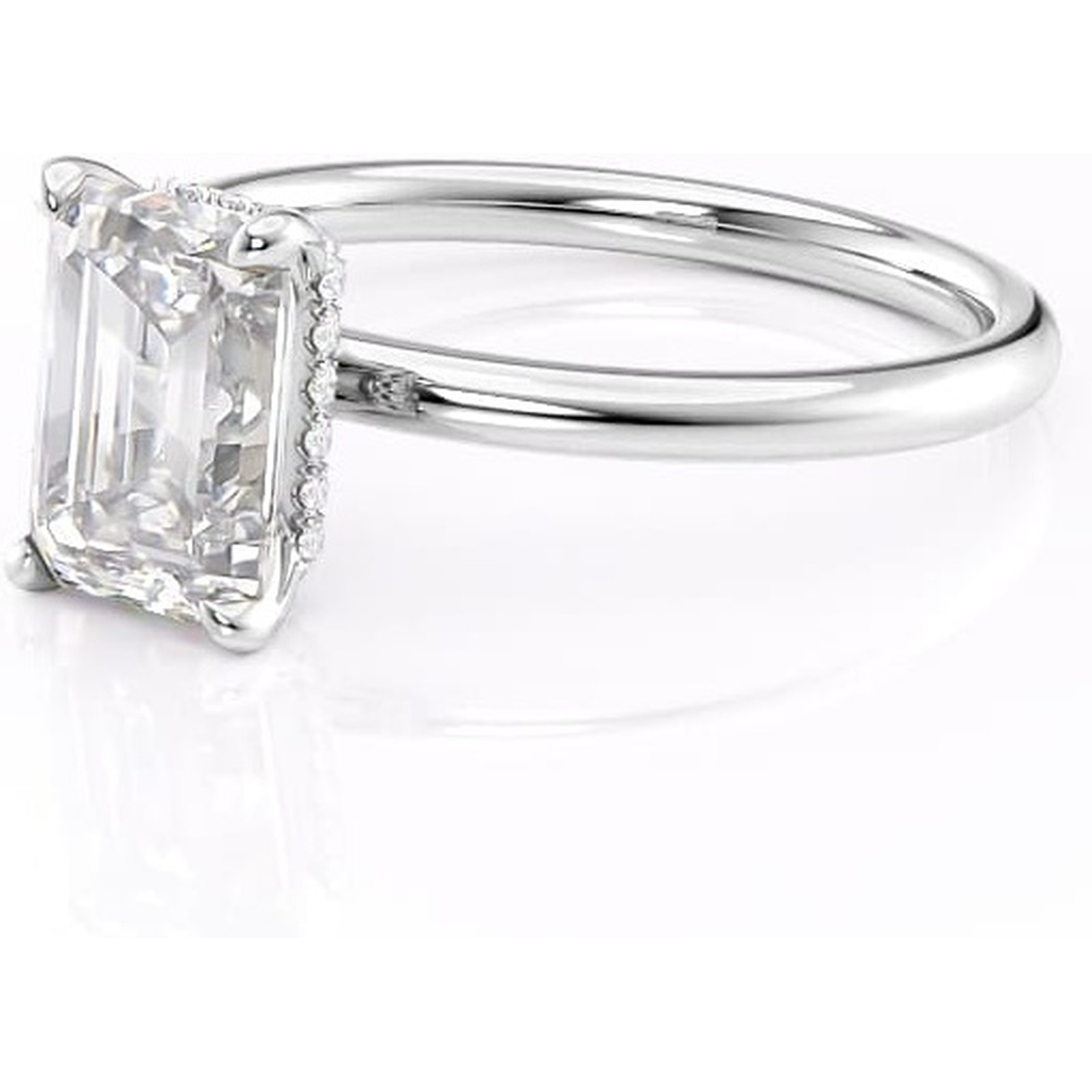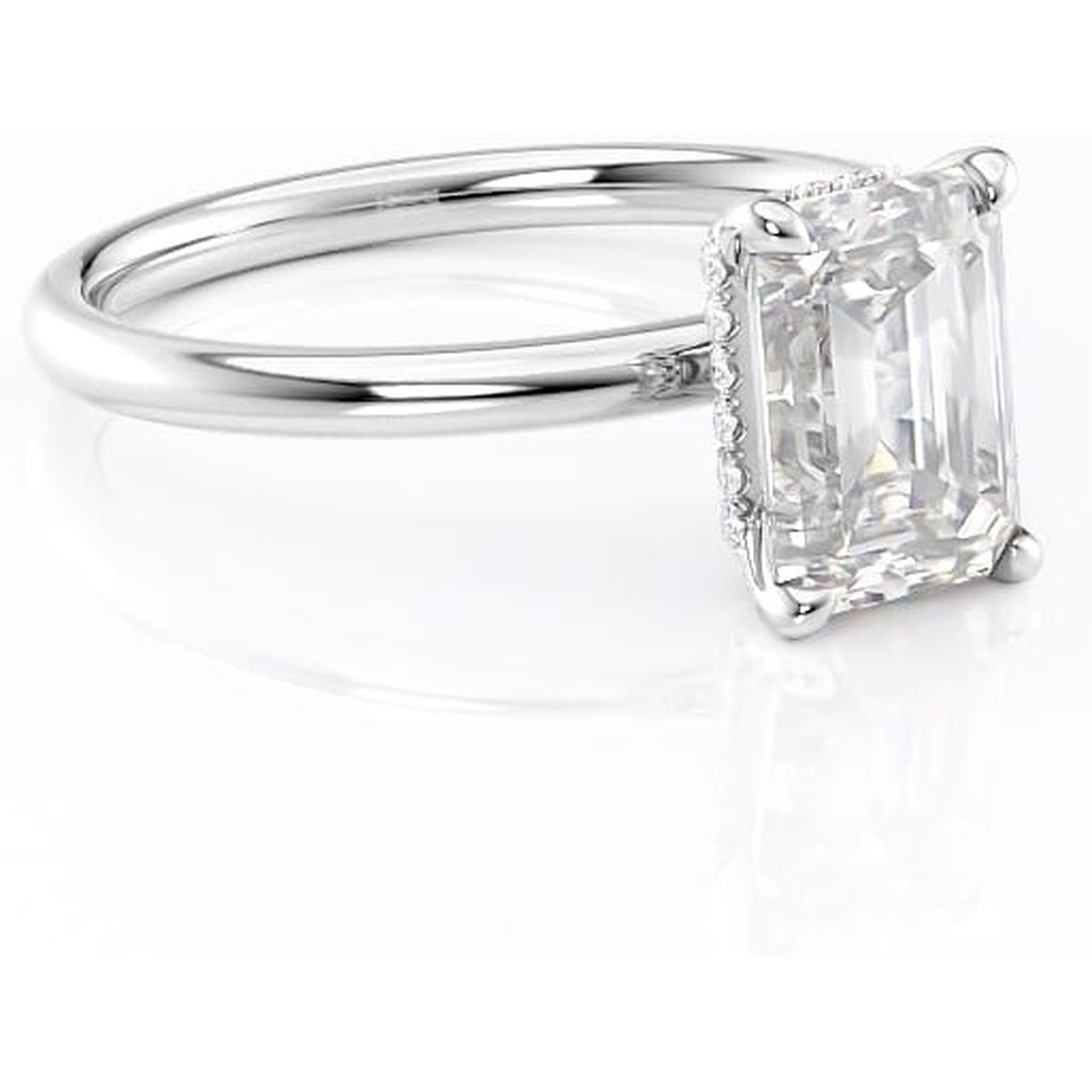 Inel de logodnă Indie din aur Alb 14kt cu moissanite tăietură smarald – Solitar rafinată pentru profil înalt | Personalizează și configurează gratuit online