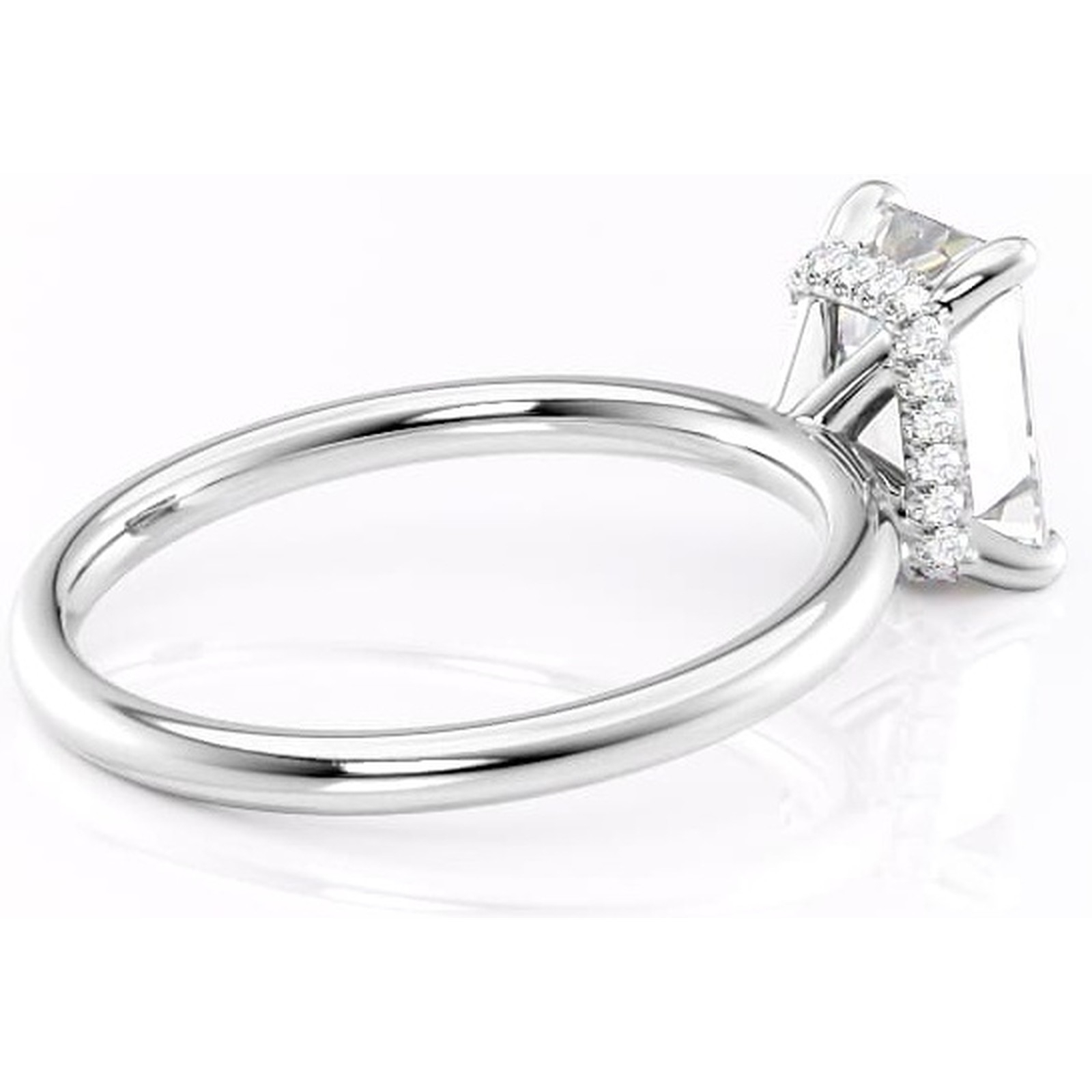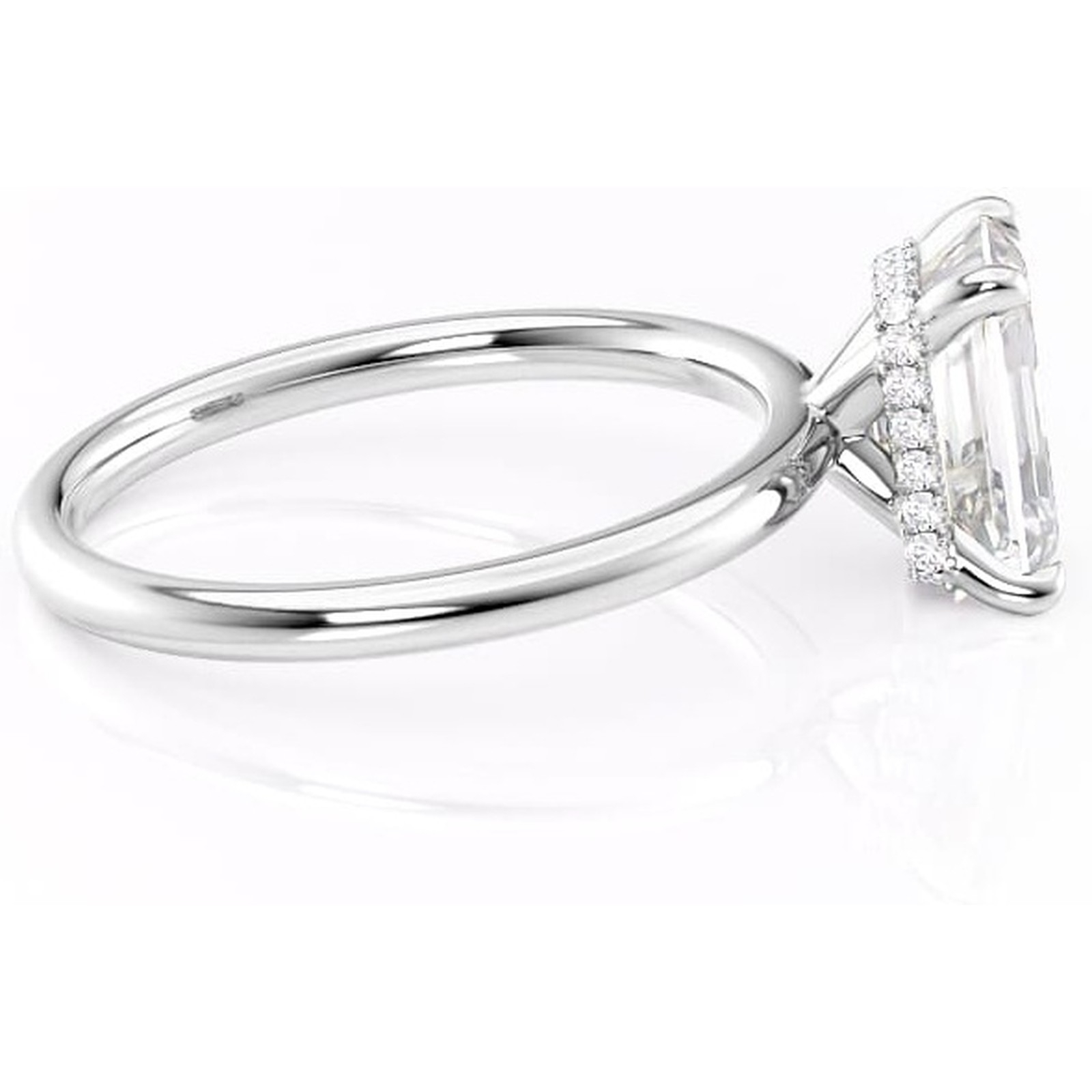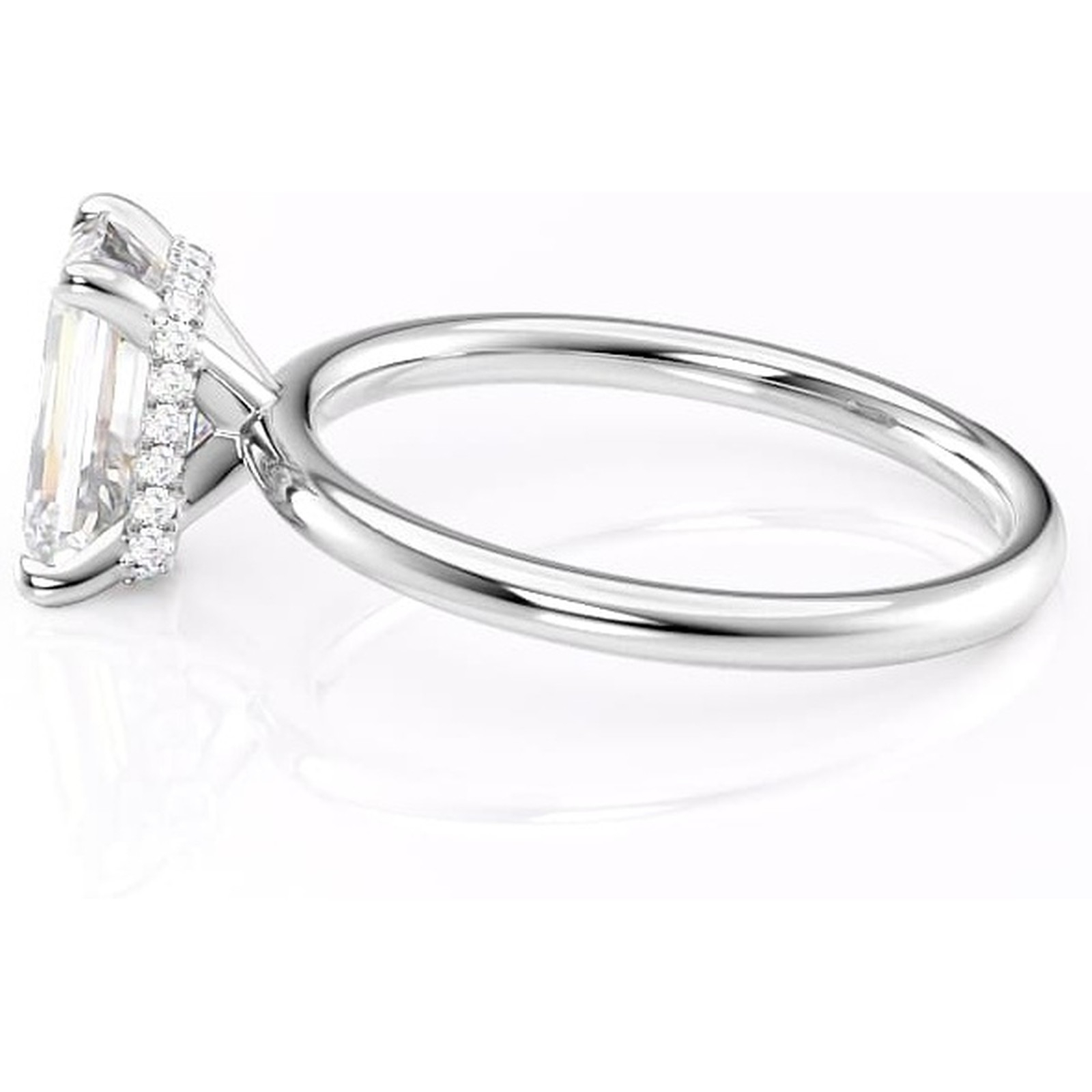 Inel de logodnă Indie din aur Alb 14kt cu moissanite tăietură smarald – Solitar rafinată pentru profil înalt | Personalizează și configurează gratuit online