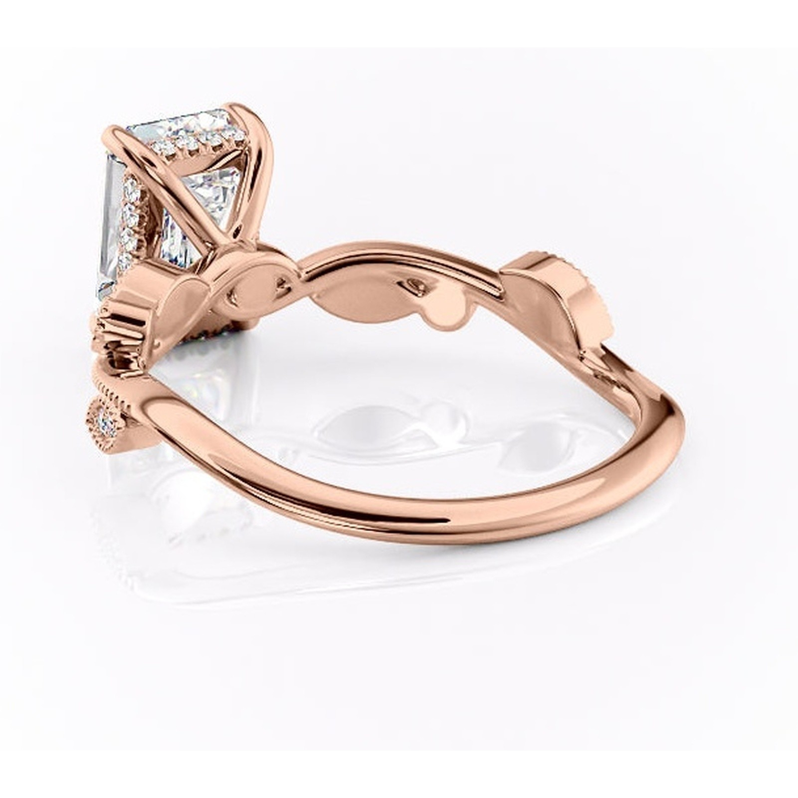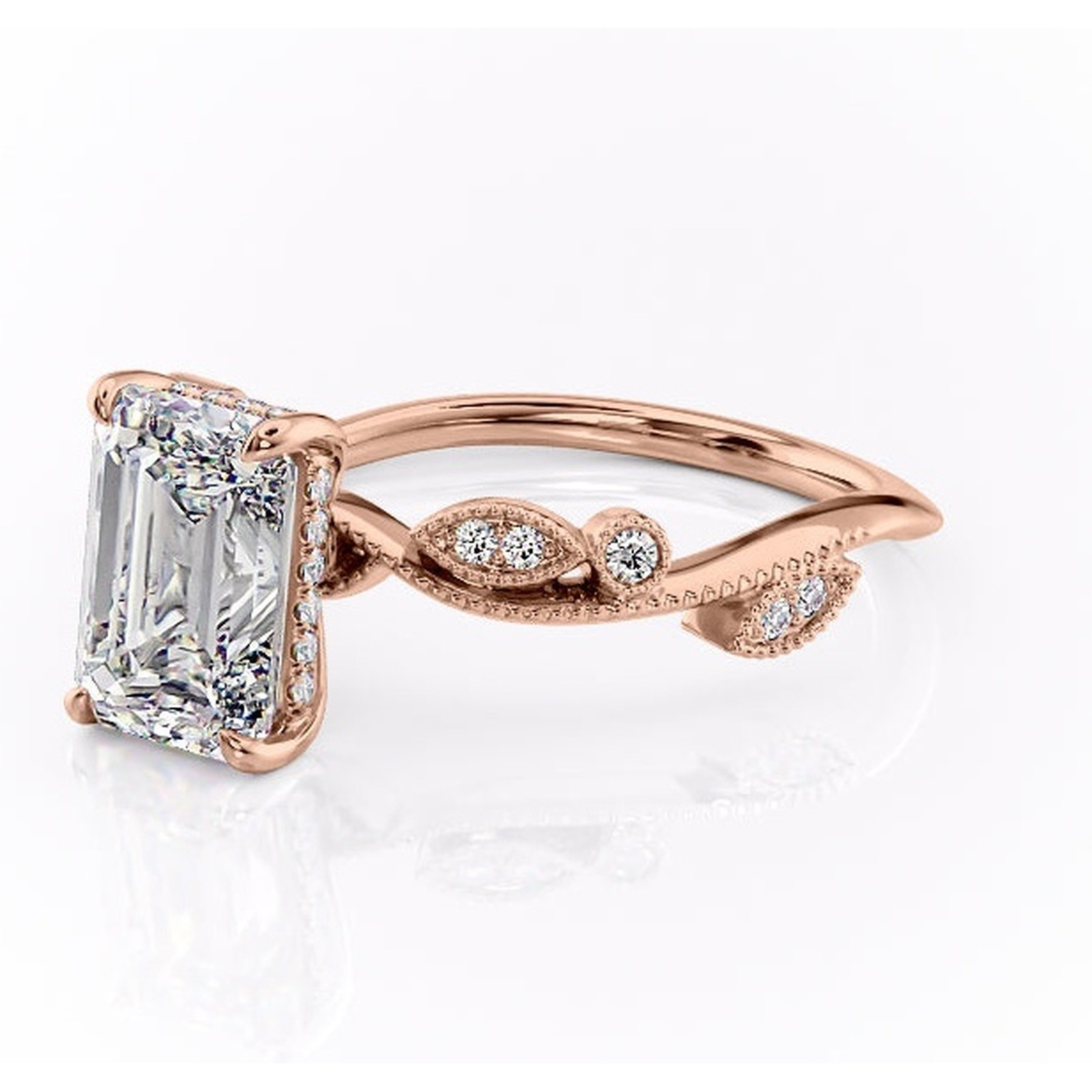 Inel de logodnă Aurelia din aur Rose 14kt cu moissanite tăietură smarald – Pietre laterale rafinată pentru profil înalt | Personalizează și configurează gratuit online