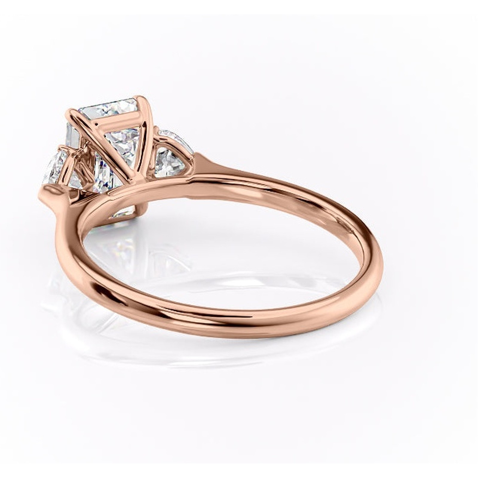 Inel de logodnă Aislyn din aur Rose 14kt cu moissanite tăietură smarald – Montură cu trei pietre rafinată pentru profil înalt | Personalizează și configurează gratuit online