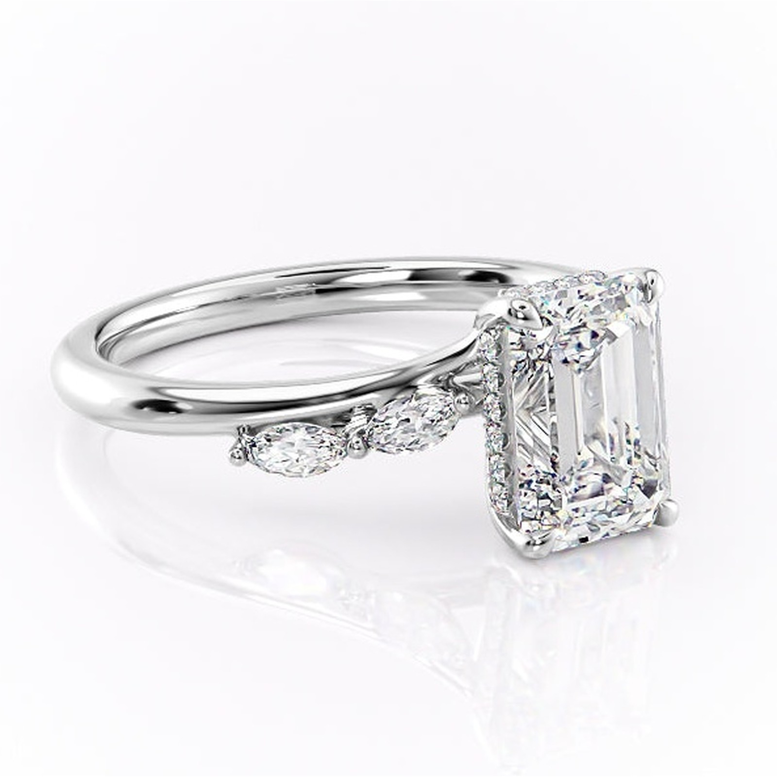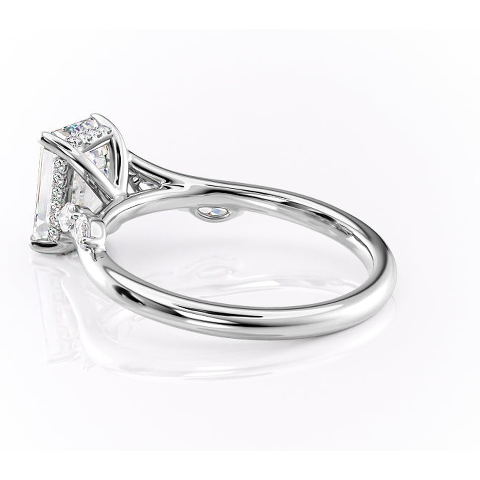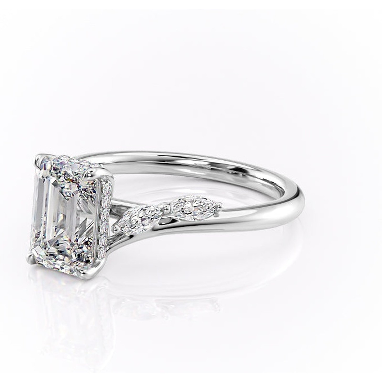Inel de logodnă Faelynn din aur Alb 14kt cu moissanite tăietură smarald – Pietre laterale rafinată pentru profil înalt | Personalizează și configurează gratuit online