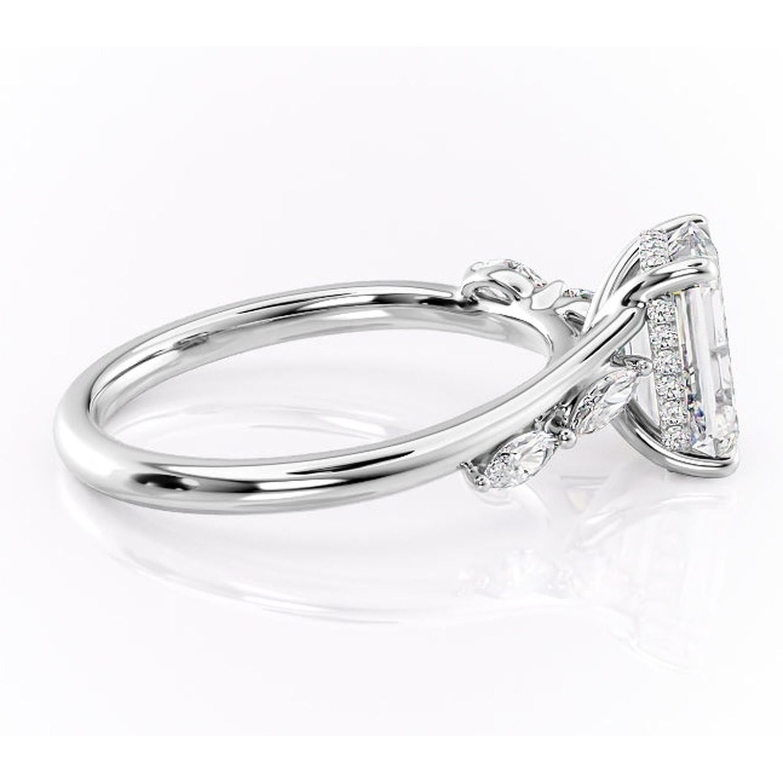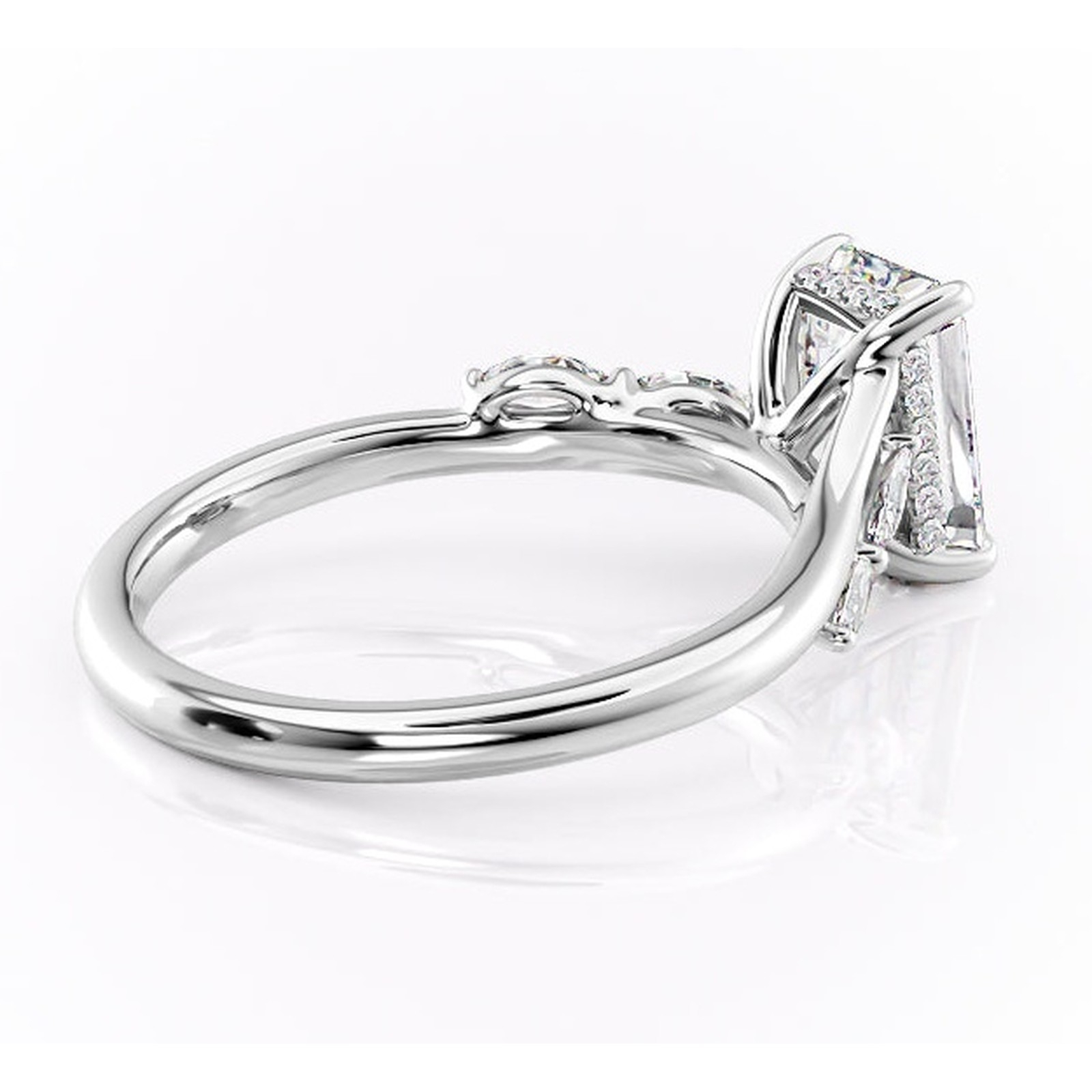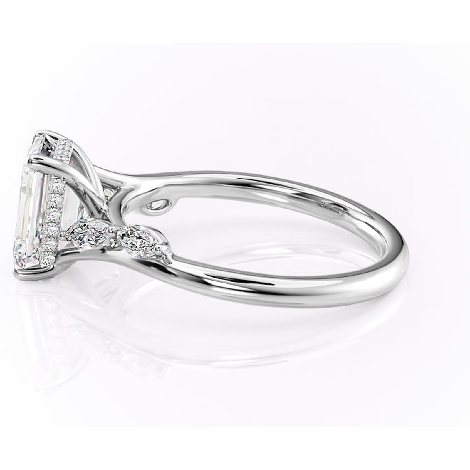 Inel de logodnă Faelynn din aur Alb 14kt cu moissanite tăietură smarald – Pietre laterale rafinată pentru profil înalt | Personalizează și configurează gratuit online