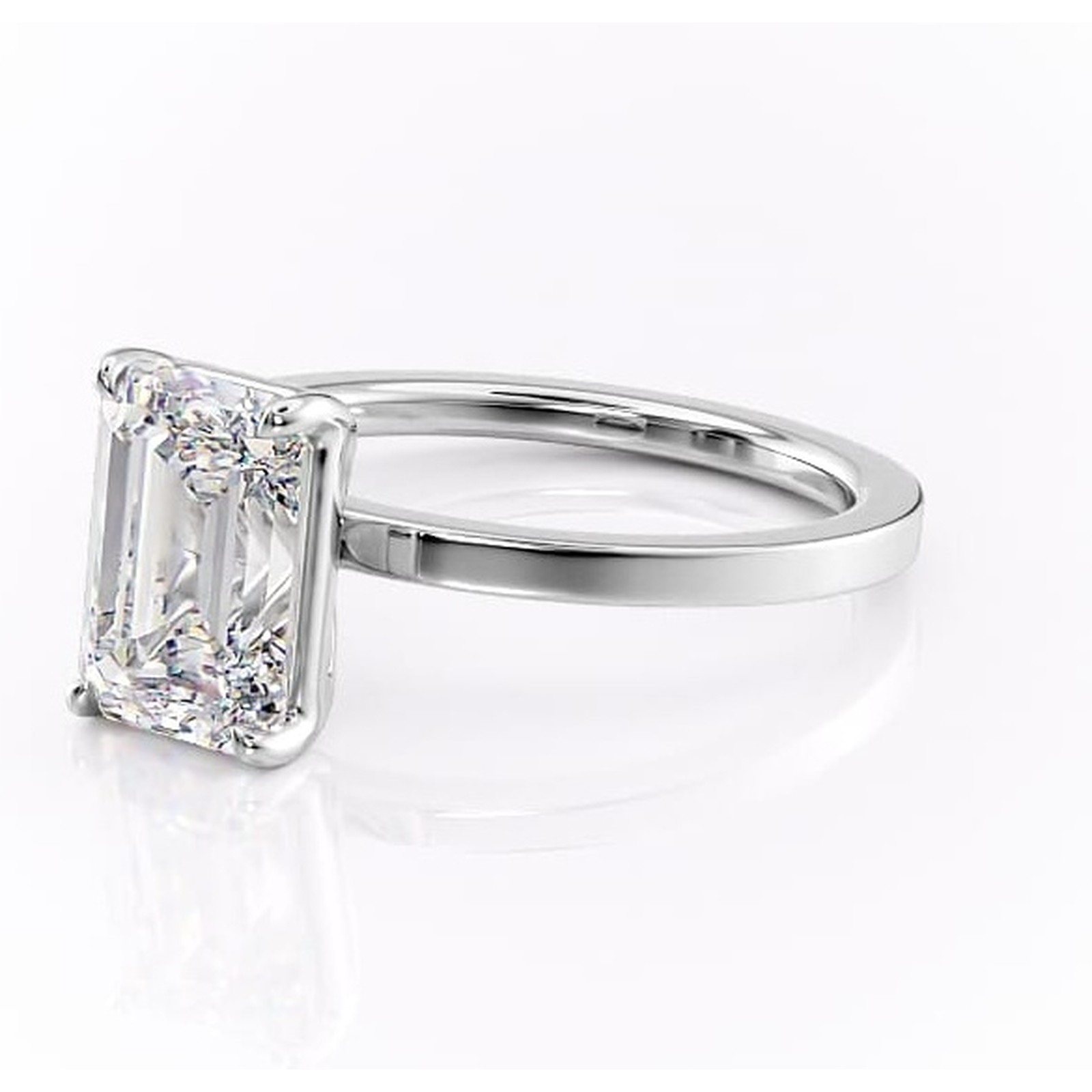 Inel de logodnă Georgiana din aur Alb 14kt cu moissanite tăietură smarald – Profil pătrat rafinată pentru profil înalt | Personalizează și configurează gratuit online