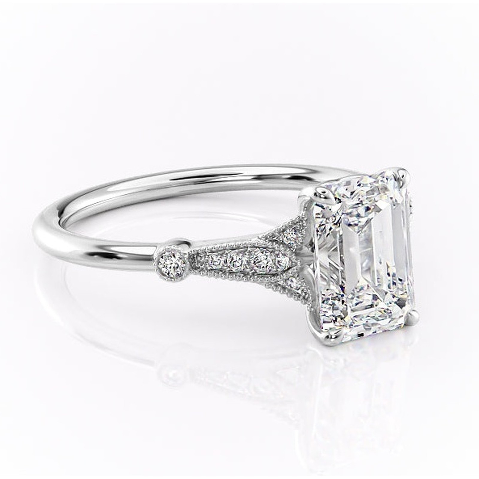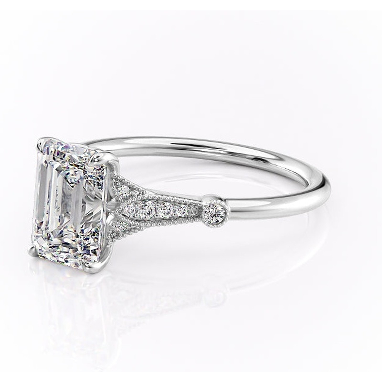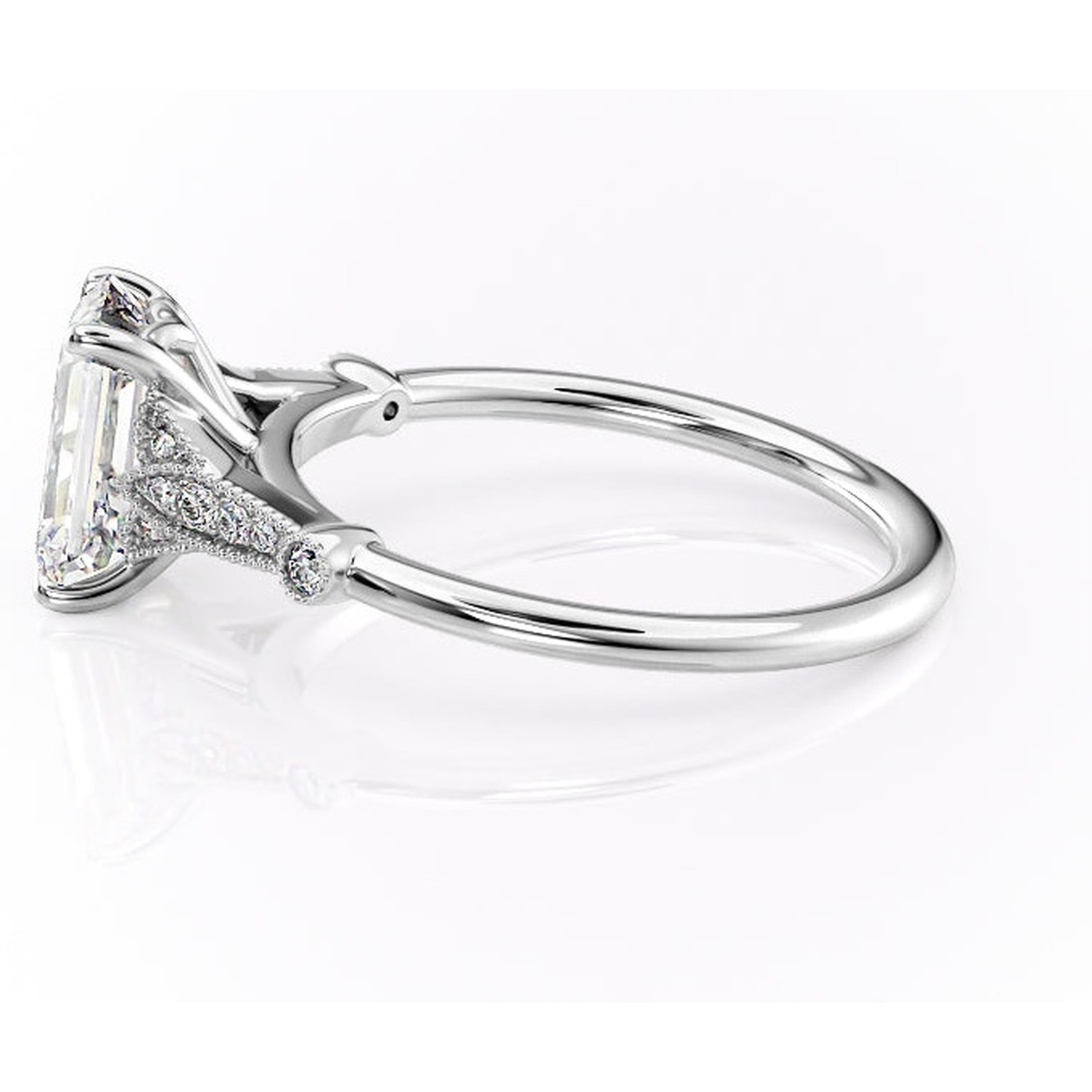 Inel de logodnă Quartzelle din aur Alb 14kt cu moissanite tăietură smarald – Pietre laterale rafinată pentru profil înalt | Personalizează și configurează gratuit online
